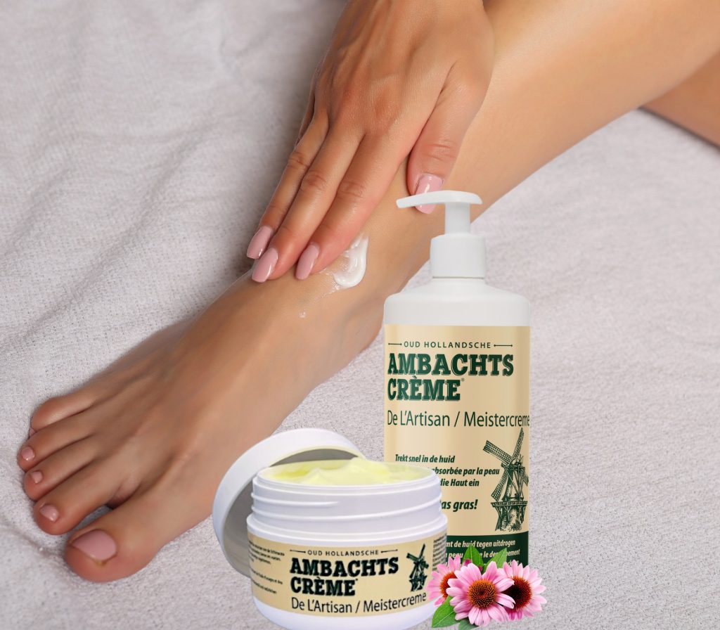 4) Gebruik een voetbad, droog uw voeten goed af en verzorg ze met Ambachtscrème. Deze crème is niet vet en zit boordevol verzorgende ingrediënten die uw voeten optimaal verzorgen.