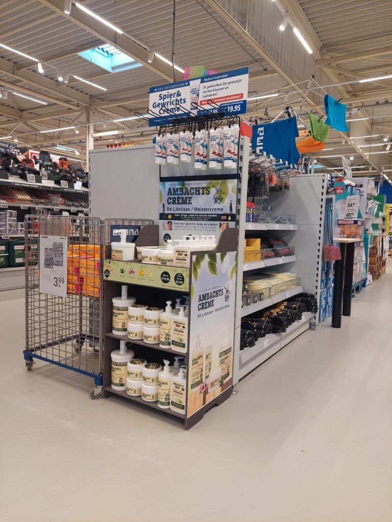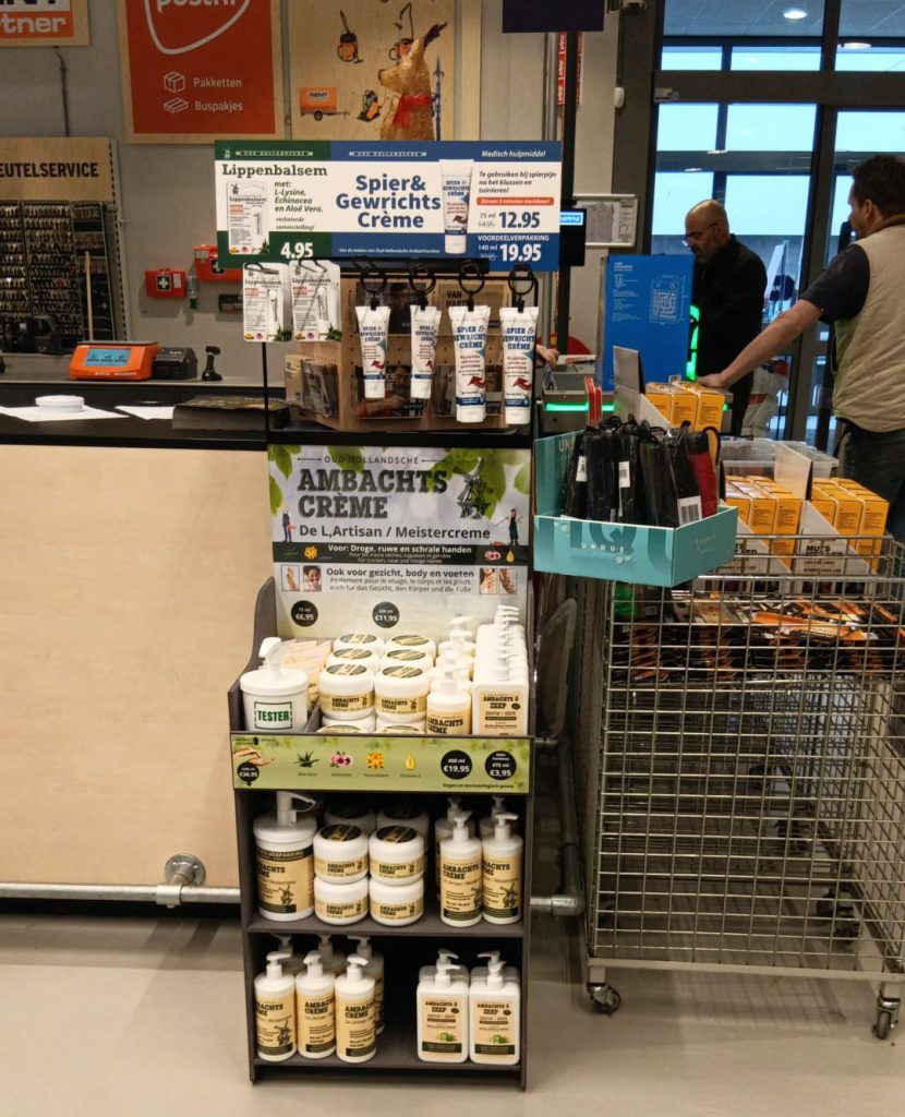 De Ambachtscrème display is een succes voor elk seizoen. Niet alleen in de wintermaanden, maar het hele jaar door kiezen consumenten voor betrouwbare verzorging van huid, spieren en lippen.